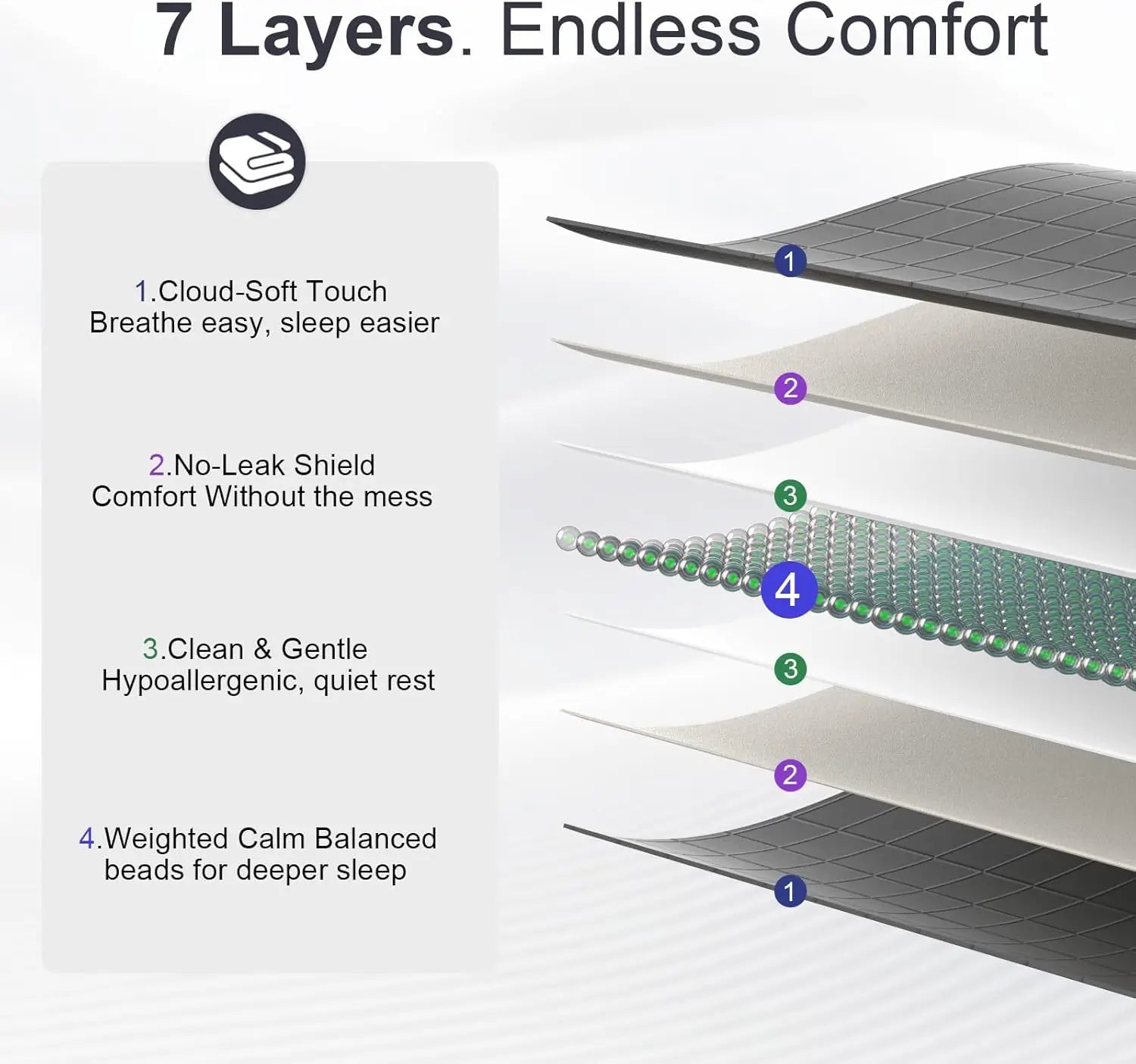 - Premium glass beads fill ensures weight stays evenly distributed, reducing movement and delivering consistent pressure for deeper, more restful sleep.
