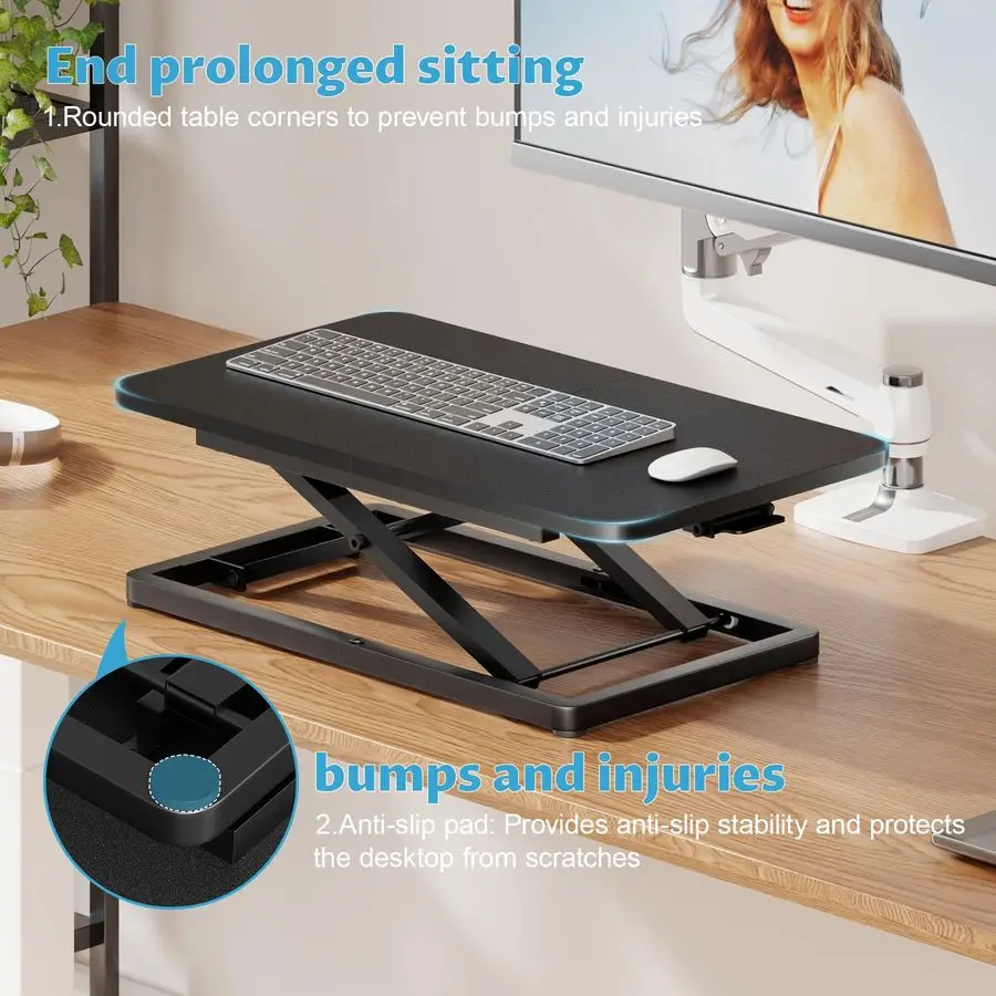 Ergonomic Wellness Support Promote healthier habits with postureshifting design using this stand up desk riser. Reduce back and neck strain from prolonged sitting by following the recommended 45min sit 15min stand rhythm. This balanced work style effectively boosts your allday comfort and sustains high productivity during long work hours.